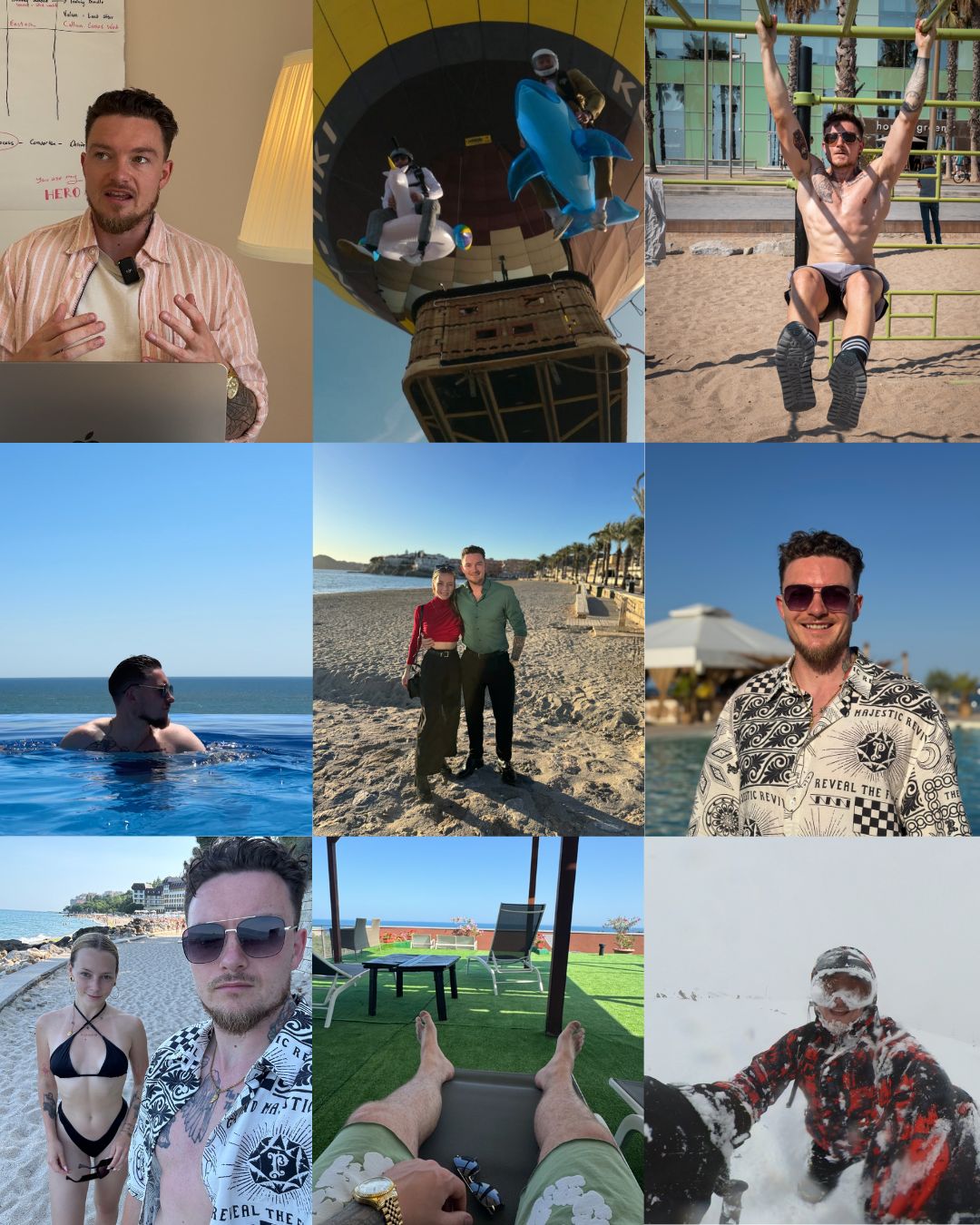 Since then I've traveled to 15 new countries, grown 3 Offers to $10k months, started a podcast, done 200 skydives, gone skiing, scuba diving and even played music in a band while coaching 750+ clients.